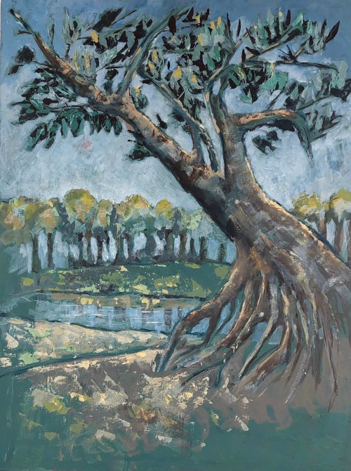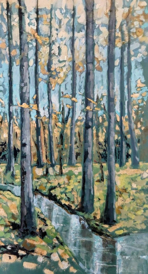 Tina tekent en schildert haar hele leven al. Dat is ook niet zo gek met een kunstschilder als vader. Het is heerlijk om naar de SKK te gaan. Het is gezellig, stimulerend en een stok achter de deur. Ze heeft verschillenden inspiratiebronnen, onder andere Monet, die zijn tuin als grootste inspiratiebron koos. Maar het lichtende voorbeeld is toch wel Vincent van Gogh, met zijn enorme gedrevenheid en doorzettingsvermogen. Haar eigen stijl? ‘Experimenteel impressionisme noem ik het’ zegt Tina.